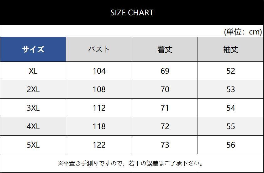 【サイズ】XL(日本サイズM相当)、2XL(日本サイズL相当)、3XL(日本サイズLL相当)、4XL(日本サイズ3L相当)