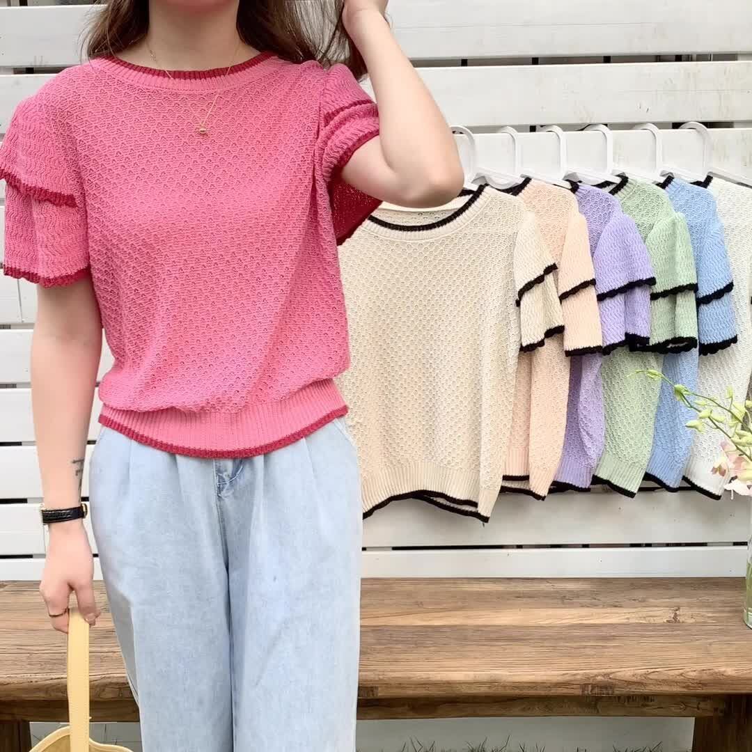 半袖Tシャツ フリルスリーブ レディース クルーネック カットソー カラバリ Tシャツ フリル 大人 カジュアル 春 夏 通学 ゆったり 韓国ファッション skwpp07 skwpp07 | オキナ商店