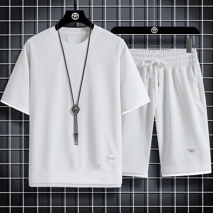 上下セット セットアップ ワッフル 夏 半袖 セットアップ メンズ 半袖 メンズ Tシャツ トップス ハーフ ショート パンツ 上下セット 無地 カジュアル 部屋着 ルームウエア 接触冷感 youzhil09 | オキナ商店
