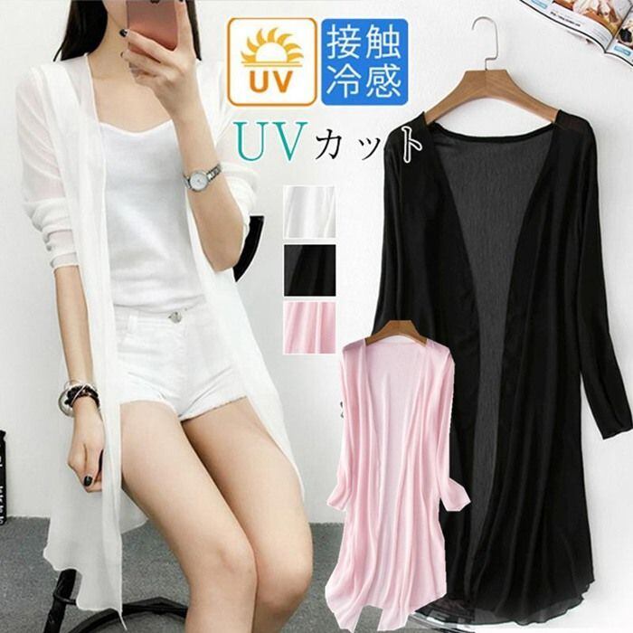 カーディガン ロングカーディガン 夏 レディース カーディガン uvカット シフォン ミディアム丈 接触冷感 冷房対策 日焼け防止 透け感 薄手 羽織り アウター オフィス 夏 可愛い