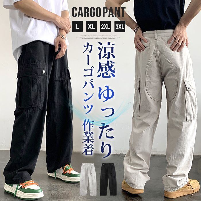 カーゴパンツ メンズ アメカジ 無地 ワークパンツ 作業着 イージーパンツ ゆったり 涼感 夏 ロング丈 シェフパンツ ズボン 薄手 かっこいい ストリート ダンス