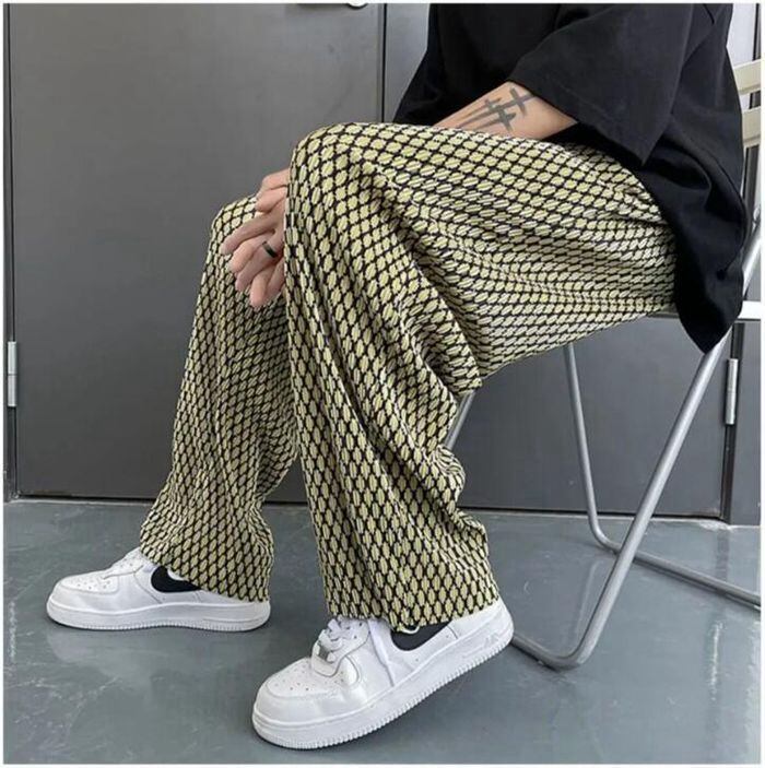 ワイドパンツ メンズ リラックスパンツ 薄手 涼しい ガラガラ 柄々 個性 イージーパンツ ボトムス 夏 秋 春 カジュアル おしゃれ かっこいい メンズファッション