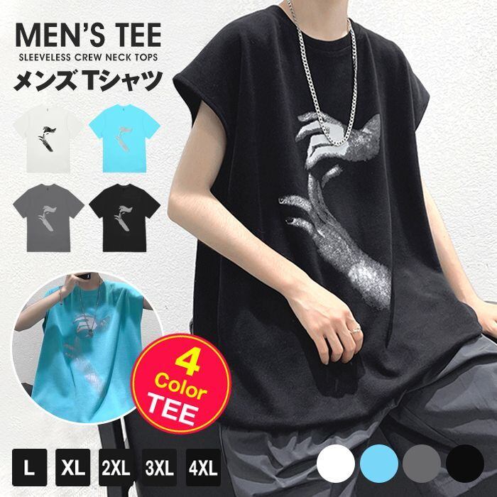 Tシャツ メンズ ノースリーブ ロゴ クルーネック カットソー トップス カジュアル スポーツ おしゃれ メンズ服 メンズファッション 夏 サマー 夏服