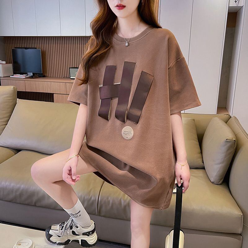 Tシャツ 半袖Tシャツ カットソー レディース 半袖 クルーネック Uネック ロング丈 ロングTシャツ トップス ロゴ 英字 可愛い カジュアル おしゃれ 着痩せ 体型カバー オーバーサイズ 通学 夏 ファッション cbrd209 cbrd209 | オキナ商店