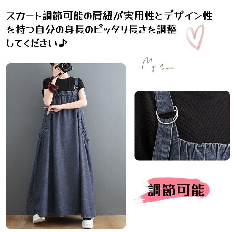 ジャンパースカート レディース デニム 春夏 ワンピース サロペットスカート キャミワンピース 重ね着 ゆったり ワンピ ロングワンピース オールインワン スカート 無地 マキシ丈 オーバーサイズ 20代 30代 40代 chaoliux05