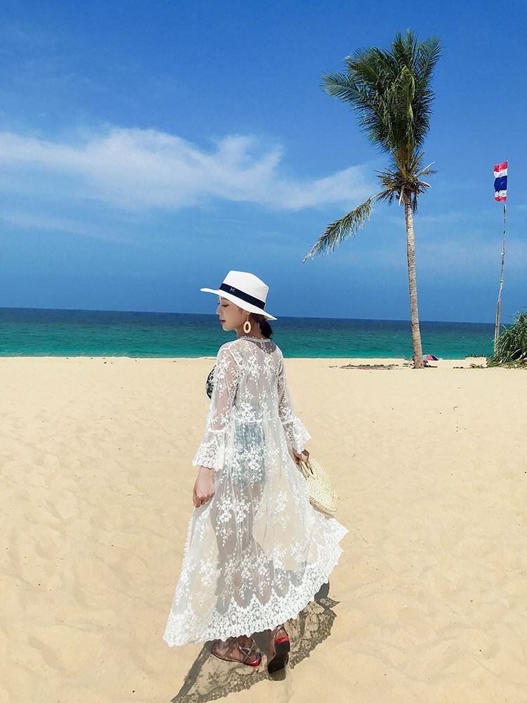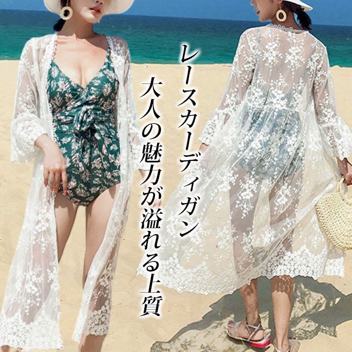 カーディガン 日焼け対策 UVカット レディース ビキニカバー ロング シアートップス 春 夏 サマー 薄手 透け感 シースルー ふんわり 七分袖 羽織 お呼ばれ 体型カバー ゆったり 上品 花柄 刺繍 総レース セクシー フェミニン