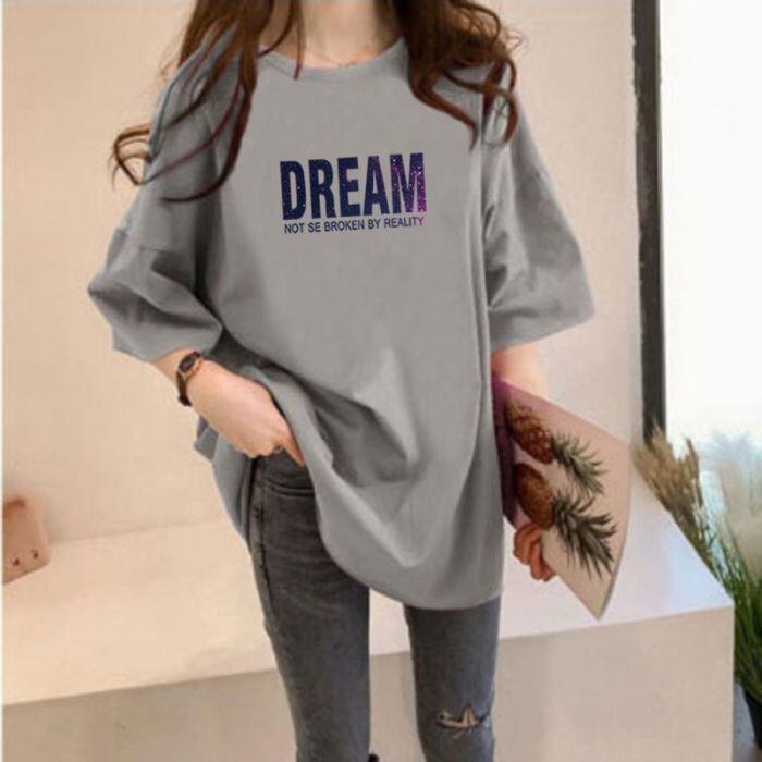 tシャツ ロング丈 tシャツ 半袖 カットソー ロゴ トップス レディース Tシャツ shirt プルオーバー 夏 ロングTシャツ 体型カバー ロンt カジュアル