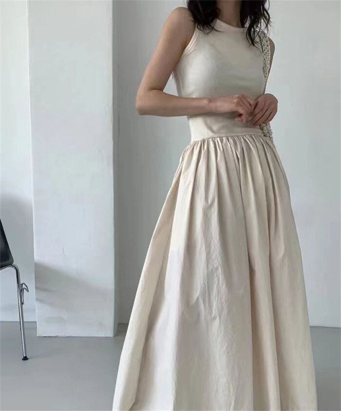 ロングワンピース ノースリーブ 夏 レディース キャミワンピース マキシワンピース 切替 Aライン フレアワンピース マキシ丈 ロング丈 大きいサイズ ゆったり ベーシック カジュアル 体型カバー 大人 かわいい おしゃれ キレイめ 春 夏