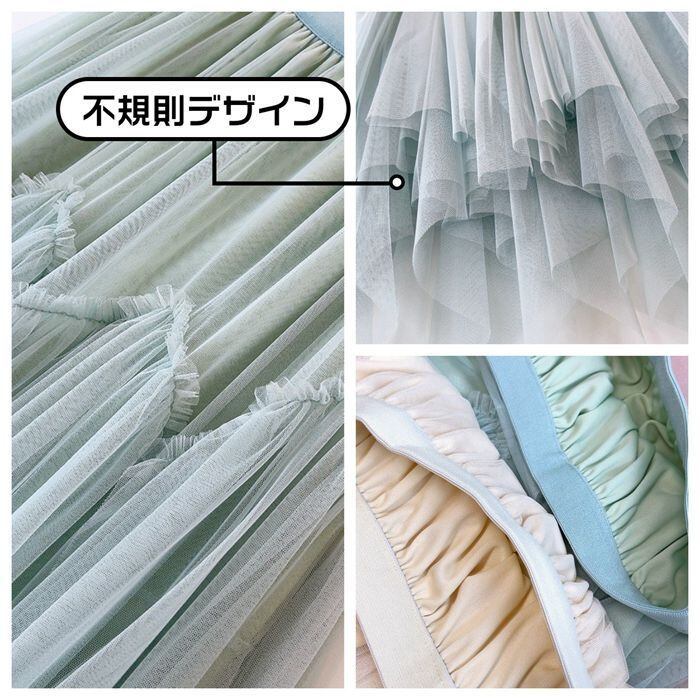チュールスカート レディース スカート お花見 桜 さくら 不規則 ロングスカート フレアスカート マキシ ウエストゴム フリル ボリューム ファッション ゆったり 動きやすい 夏 春 体型カバー きれいめqingy100