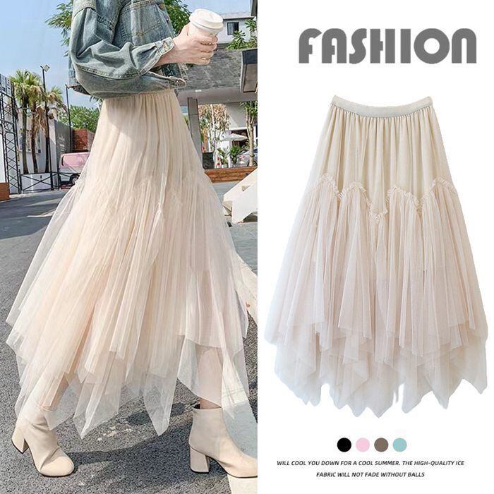チュールスカート レディース スカート お花見 桜 さくら 不規則 ロングスカート フレアスカート マキシ ウエストゴム フリル ボリューム ファッション ゆったり 動きやすい 夏 春 体型カバー きれいめqingy100 | オキナ商店