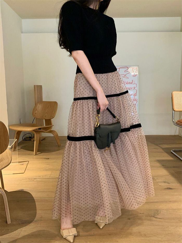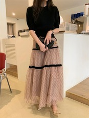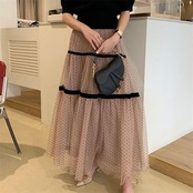 チュールスカート 夏 レディース ドット 水玉 フレアスカート 春夏 ロングスカート チュールスカート ボトムス キレイめ 体型カバー ウエストゴム Aライン お洒落 ゆったり エレガント フェミニン 大人可愛い weinannan01