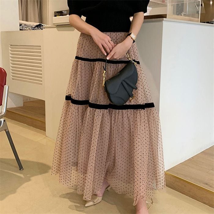 チュールスカート 夏 レディース ドット 水玉 フレアスカート 春夏 ロングスカート チュールスカート ボトムス キレイめ 体型カバー ウエストゴム Aライン お洒落 ゆったり エレガント フェミニン 大人可愛い weinannan01 | オキナ商店