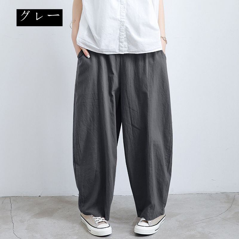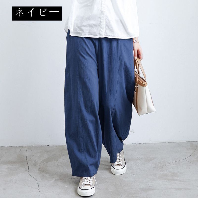 ワイドパンツ レディース サルエルパンツ 夏 ロング丈 フレア パンツ ウエストゴム ガウチョ ボトムス カジュアル 涼しい ナチュラル 無地 選べる10カラー ririt122 ririt122 | オキナ商店