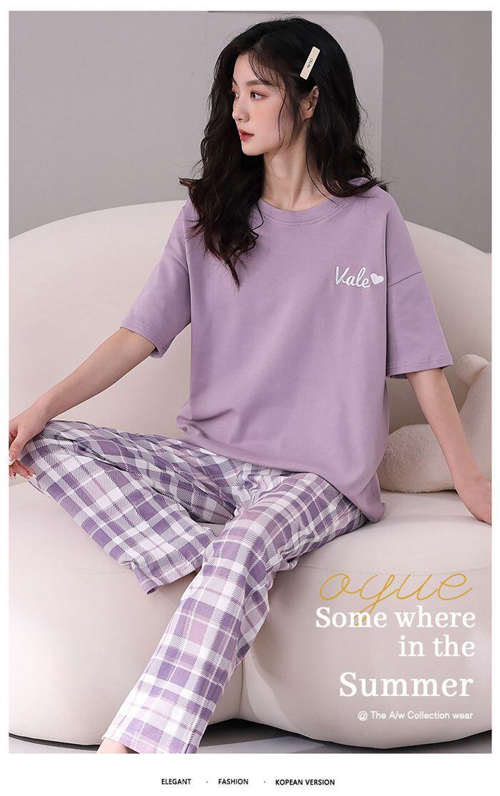 パジャマ レディース ルームウェア 4TYPE チェック柄 冷感 半袖 寝巻き 韓国風 寝間着 大人 部屋着 薄手 旅行 おしゃれ 上下セット shuishen01 shuishen01 | オキナ商店
