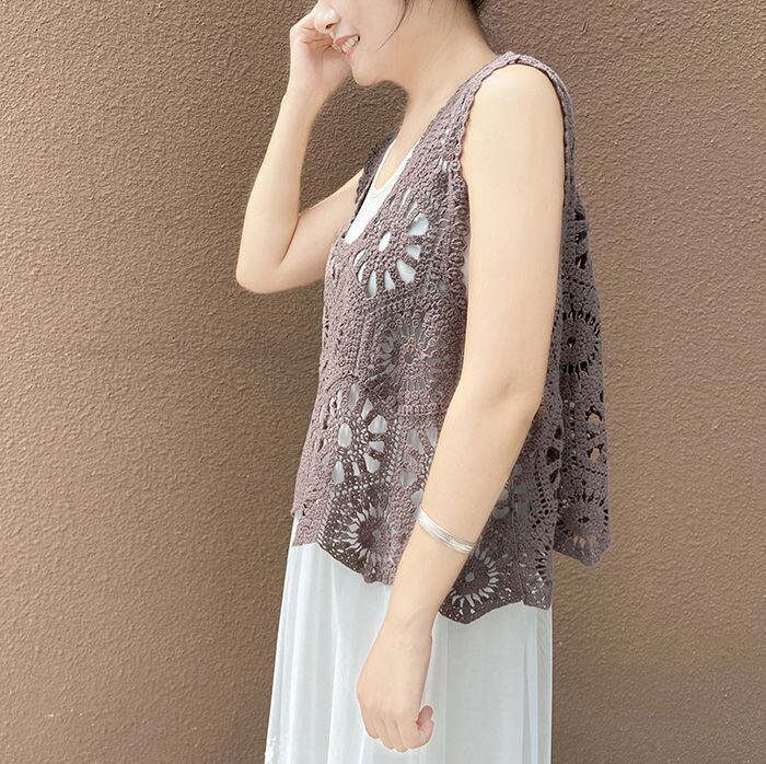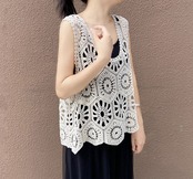 ベスト レディース 春 夏 クロシェ編み トップス 透かし編み プルオーバー Vネック かぎ編み カジュアル 無地 レイヤード ニットベスト トップス きれいめ カジュアル フェミニン 無地 大人 かわいいsmms01