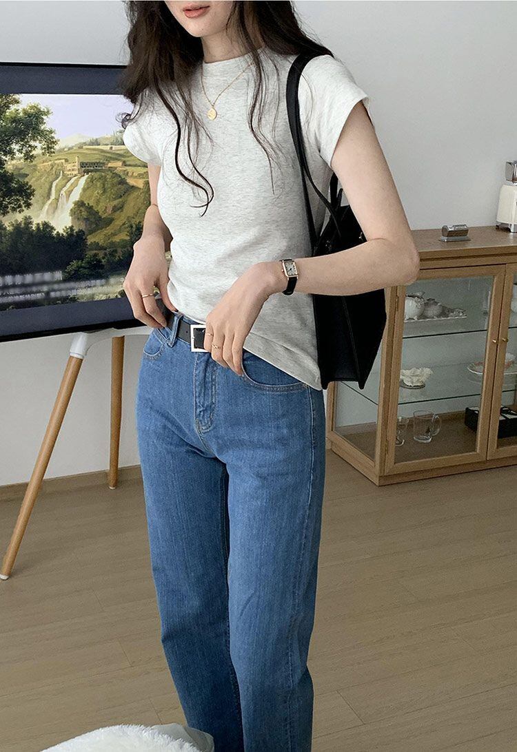シンプルの綿混んTシャツ。普通の半袖より袖が短いですが、