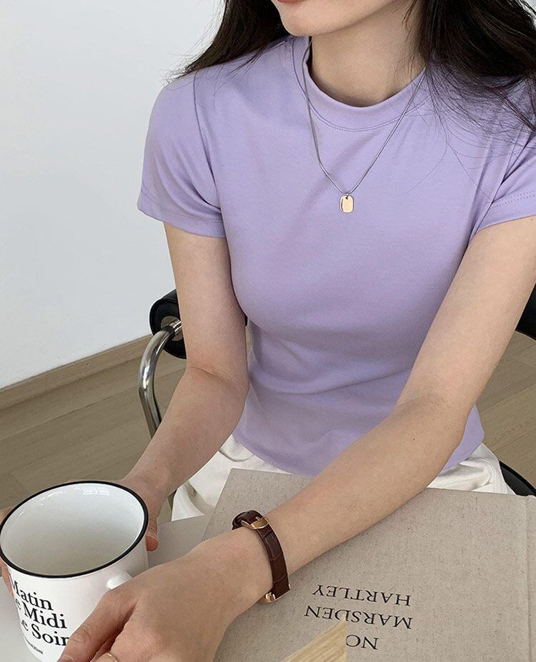 半袖tシャツ レディース tシャツ 半袖 カットソー Tシャツ クルーネック トップス 春夏 袖短い プチハイネック コットン 綿 無地 フィット感 きれいめ おしゃれ オシャレ レイヤード 重ね着 インナートップス カジュアル 20代 30代 40代 春 夏
