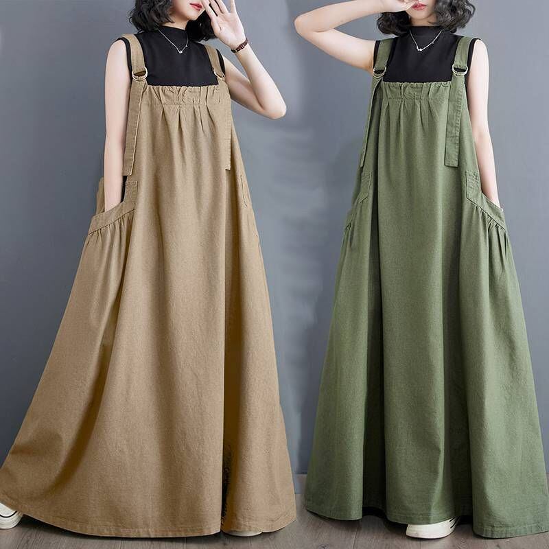 ジャンパースカート レディース 春夏 ワンピース サロペットスカート キャミワンピース 重ね着 ゆったり ワンピ ロングワンピース オールインワン スカート 無地 マキシ丈 オーバーサイズ chaoliu86-qz | オキナ商店