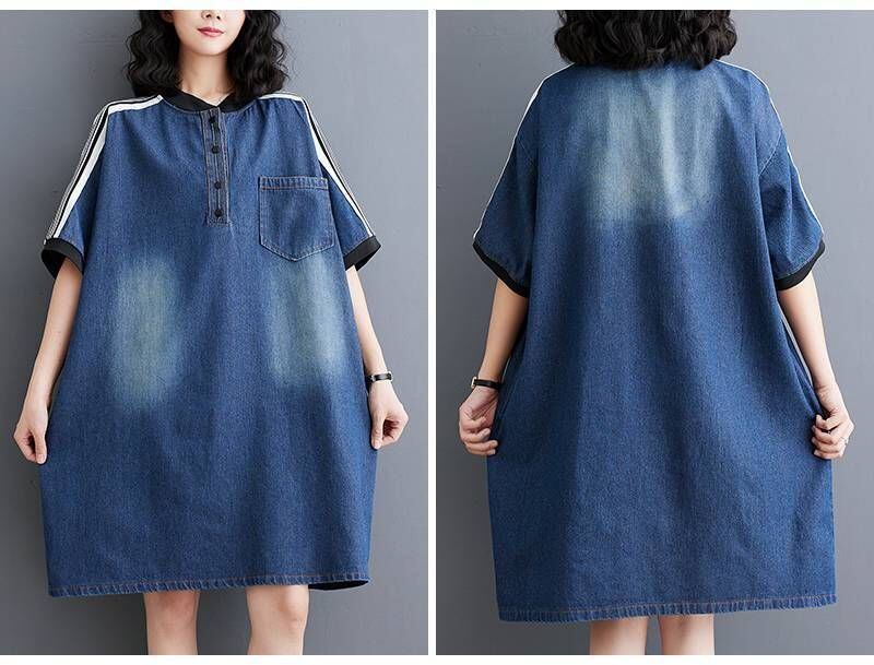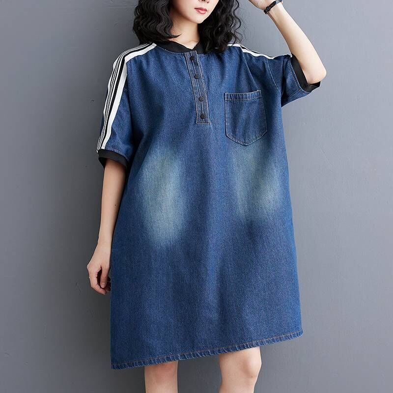 チュニック デニムワンピース 夏 レディース ロング デニム シンプル 美シルエット ワンピース 着やせ かわいい 通勤 通学 カジュアル