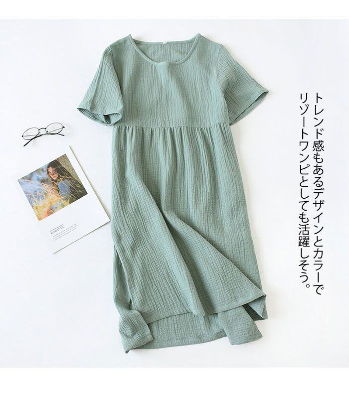 ワンピース ガーゼ ルームウェア ダブル ガーゼ パジャマ レディース ガーゼ ワンピース 半袖 綿100% 部屋着 ワンピース ルームワンピース ガーゼ ミモレ丈 透けない ゆったり シンプル ネグリジェ 寝間着 かわいい 春夏 無地 youyi02 | オキナ商店
