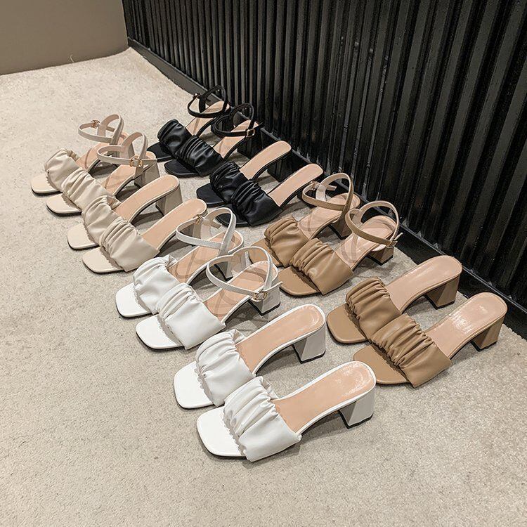 サンダル アンクルストラップサンダル レディース チャンキーヒール スサンダル スクエアトゥ 春夏 シンプル 美脚 スムース スリッパ レディース 歩きやすい 痛くない 履きやすい アウトレットシューズ 6.5CMヒール オープントゥ jiayang01 | オキナ商店