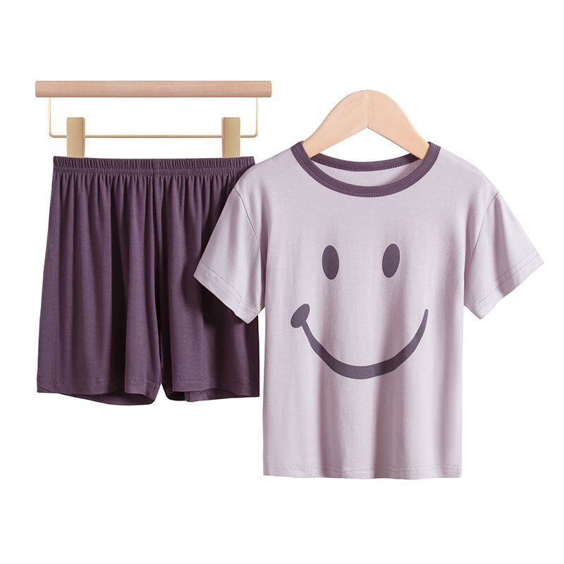 パジャマ キッズ モーダル スマイル ルームウェア 半袖&ショートパンツ ラウンドネック 寝巻 上下セット 女の子 男の子 薄手 綿 春 夏 韓国風 セットアップ 子供 かわいい おしゃれ 子供服