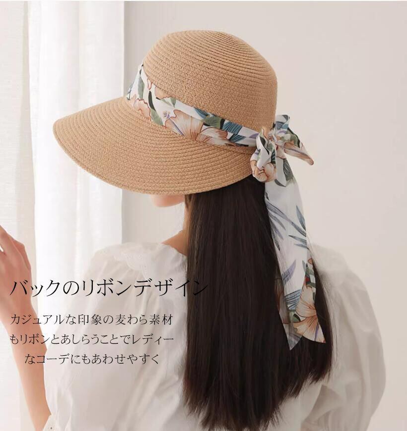 麦わら帽子 帽子 レディース 夏 春夏 麦わら つば広 ペーパーハット 日焼け対策 UV 蝶結び リボン ハット 折りたたみ プレゼント エレガント 母 お出かけ 海 ビーチ 紫外線対策 日よけ帽 あご紐