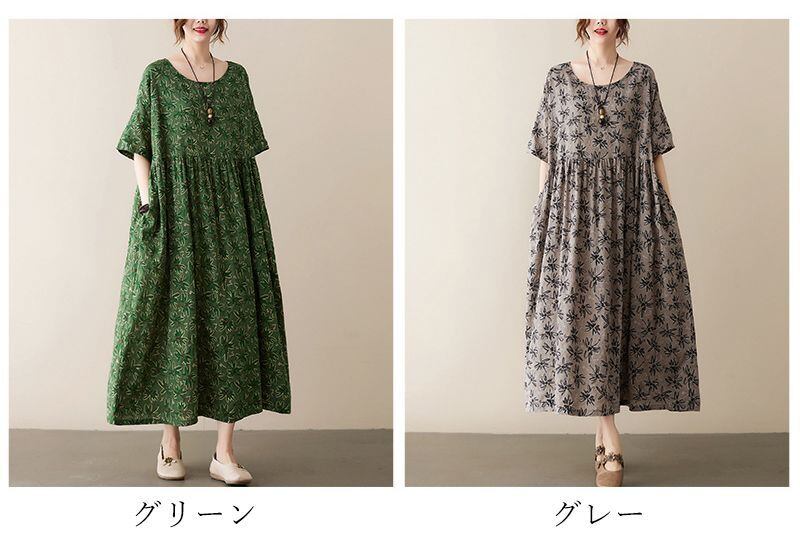 ロングワンピース ワンピース レディース 春 夏 きれいめ マキシ丈 マキシワンピ ロングワンピ 体型カバー シンプル 半袖 総柄 花柄 可愛い Vネック 着?せ エレガント 旅行 リゾート ビーチ