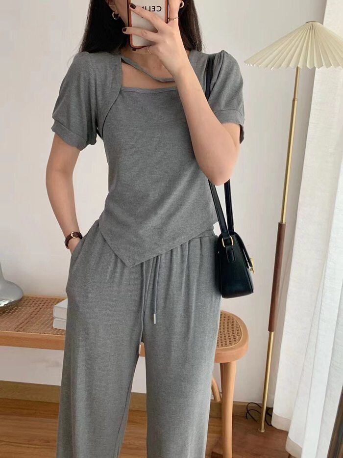 セットアップ 上下セット レディース 夏 ワイドパンツ Tシャツ パンツ 半袖 ボトムス お洒落 カジュアル