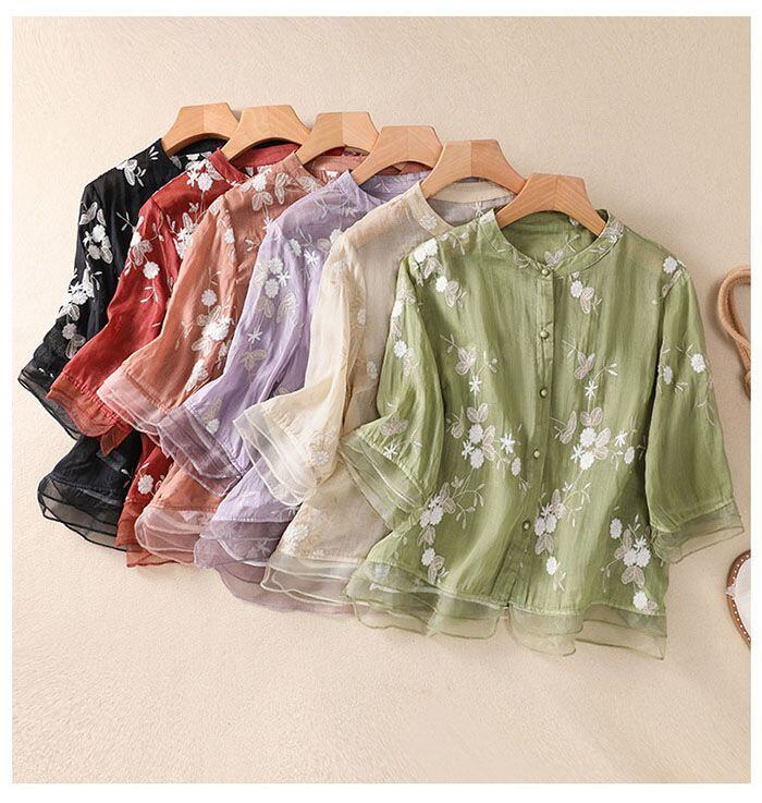 綿麻風ブラウス シャツ ブラウス レディース 七分袖 春 夏 花柄 刺? シャツブラウス 総柄 トップス 大きいサイズ ゆったりチュニック 半袖 ナチュラル シャツ おしゃれ Tシャツ きれいめ 体型カバー カジュアル ナチュラル 森ガール mansi05 | オキナ商店