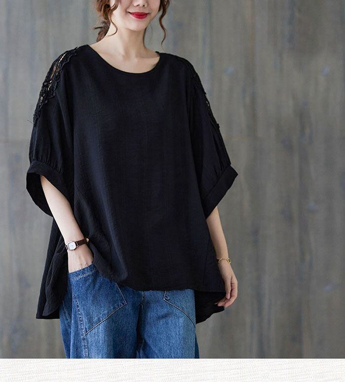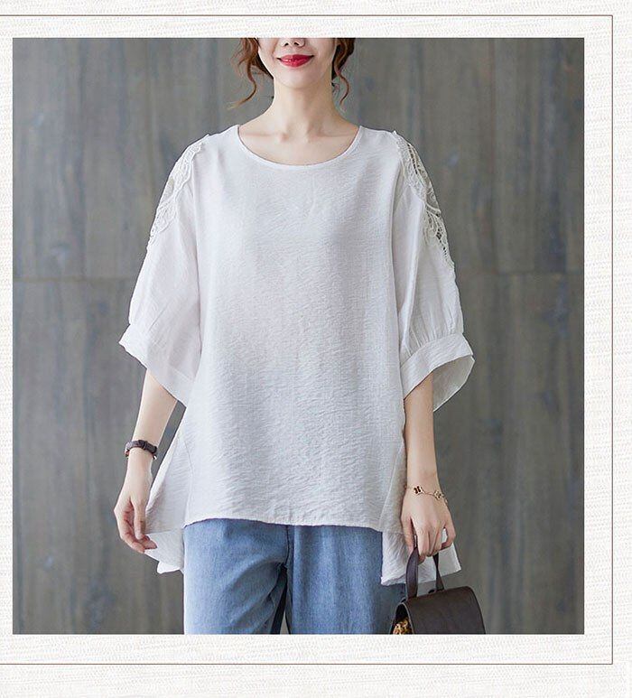 チュニック 大人可愛い 夏 チュニック ブラウス レディース 綿麻風 チュニック 大きいサイズ ゆったり 体型カバー 五分袖 Aライン フレア チュニックワンピース 無地 トップス 大人可愛い 春夏 カジュアル zmfs02 | オキナ商店