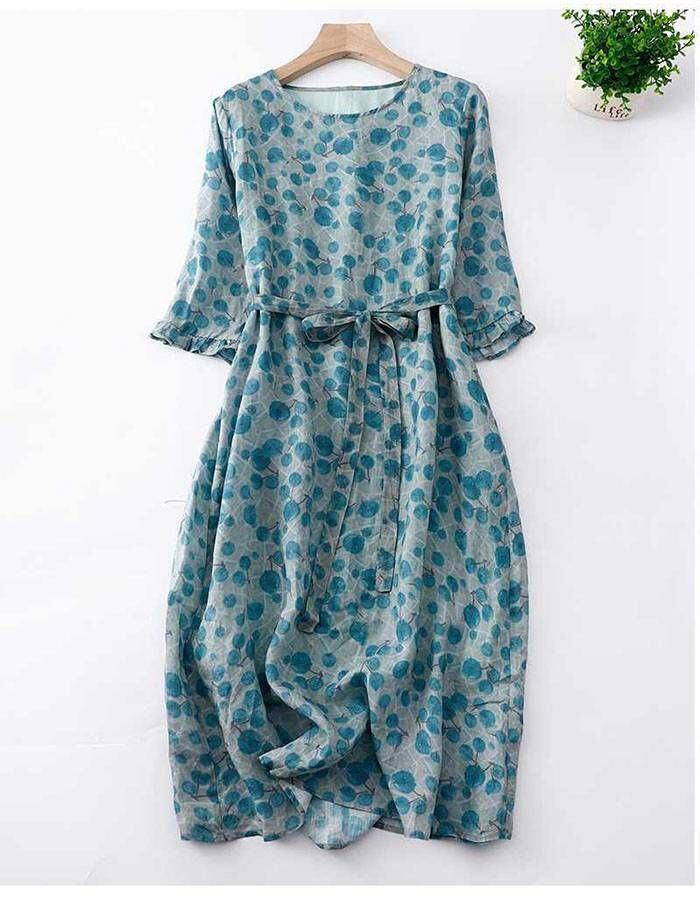 ワンピース 春 きれいめ 七分袖 ロングワンピース 花柄 夏 レディース リゾートワンピース クルーネック ミモレ丈ワンピース 綿麻風 大きいサイズ ゆったり 体型カバー Aライン 森ガール ワンピ キレイめ カジュアル ゆったり 体型カバー シンプル 着痩せ