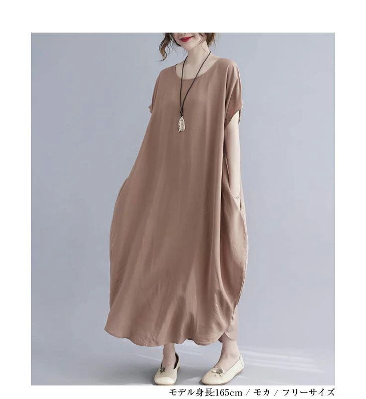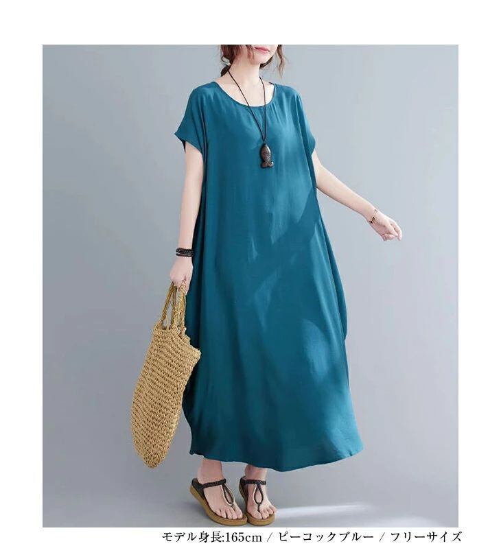 ワンピース 大きいサイズ 無地 半袖 マキシ丈 ロング ロングワンピ ワンピ ゆったり ラウンドネック カジュアル ホワイト ブルー ブラック レディースファッション 20代 30代 40代 50代 60代 ワンピスター nvrenhua04 | オキナ商店