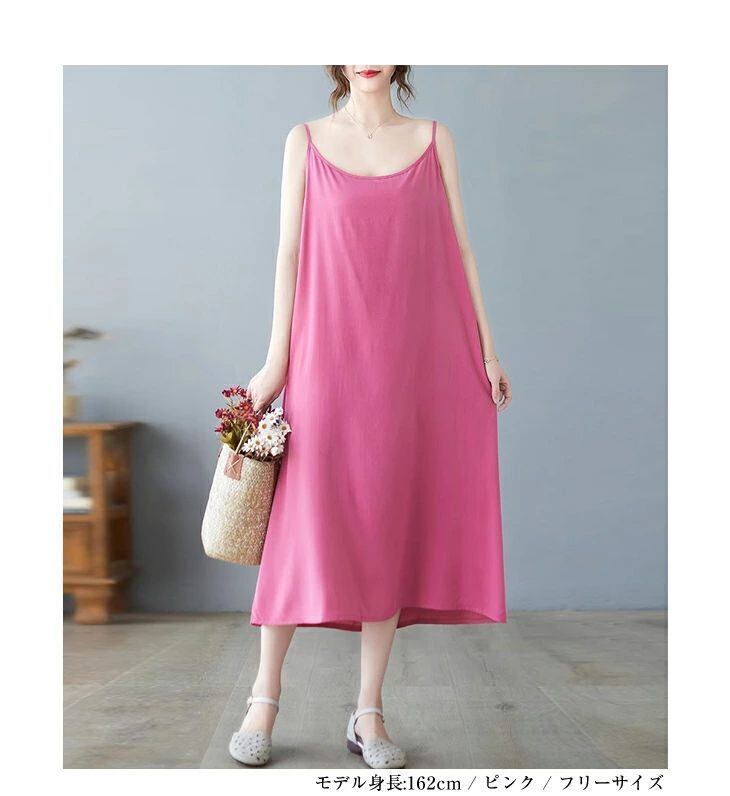 ワンピース キャミソールスカート 無地 ロング ワンピ イエロー パープル モカ ブルー ブラック グリーン ホワイト ピンク 春 夏 レディースファッション 20代 30代 40代 50代 60代 ワンピスター nvrenhua02 | オキナ商店