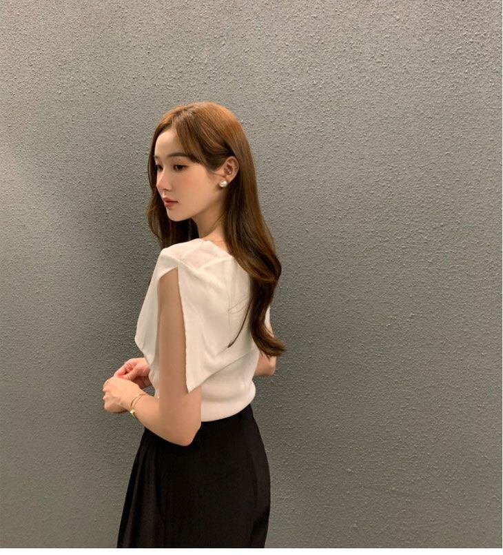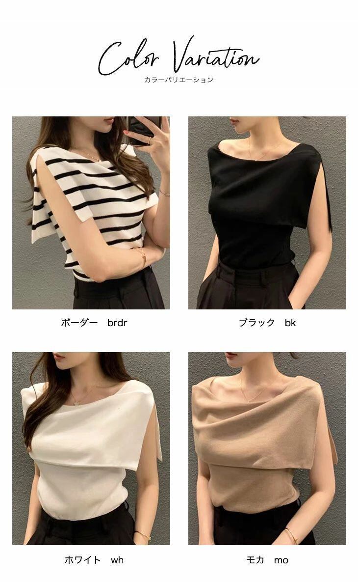 ケープサマーニット デコルテ サマーニット トップス ケープデザイン レディース ノースリーブ タンク tシャツ 半袖 カジュアル 無地 シンプル おしゃれ 大人 夏 春 着回し ホワイト ブラック オフィス きれいめ ボーダー おしゃれ カジュアル
