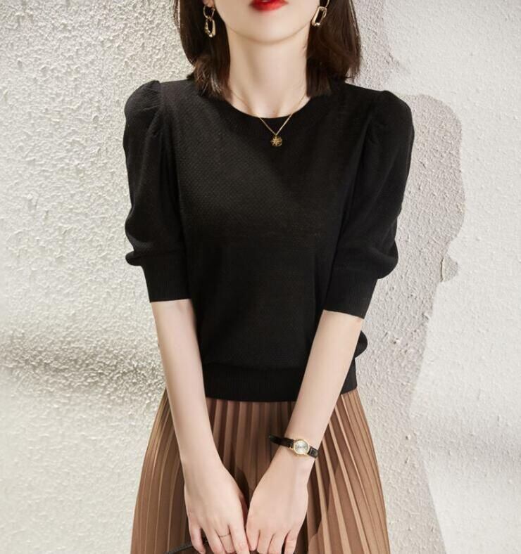 ニットTシャツ パフスリーブ レディース 半袖 Uネック シンプル ニット トップス カットソー サマーニット キレイめ 大人 カジュアル 半袖 レディース きれいめ オフィス カジュアル 20代 30代 40代