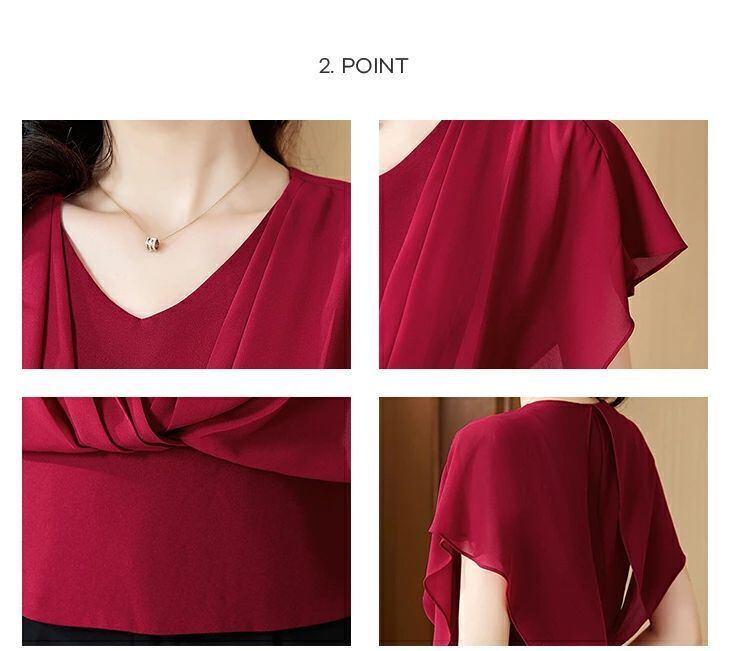 トップス ブラウス 母の日 Vネック ホワイト ブラック ワインレッド 白 黒 赤 上品 高見え 二の腕カバー 半袖 エレガント レディースファッション 20代 30代 40代 50代 60代 ワンピスターmlyx02 | オキナ商店