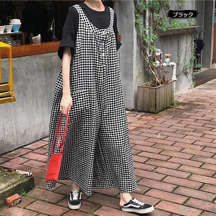 サロペット パンツ レディース ワイドパンツ オールインワン 春 大きいサイズ チェック ガウチョパンツ ロングパンツ オーバーオール 体型カバー ゆったり 美脚 綿 着痩せ ロング リラックス カジュアル風 夏 涼しいyhzj02 | オキナ商店