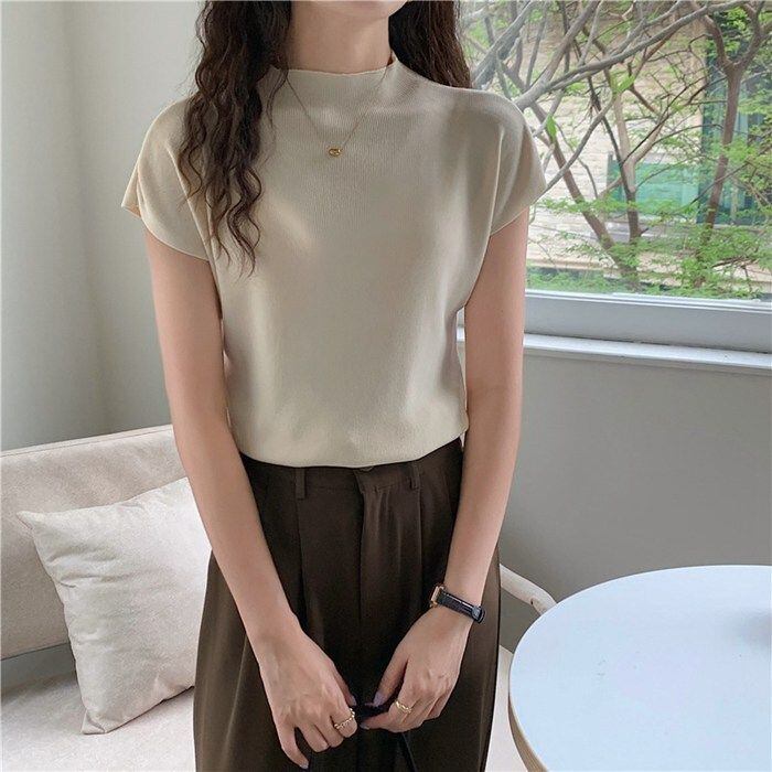 ハーフタートルネック ニット セーター レディース 春 夏 半袖 トップス アイスシルク スリムフィット シンプル サマーニット ニットトップス プルオーバー カジュアル お洒落 韓国ファッションyueyue01 | オキナ商店