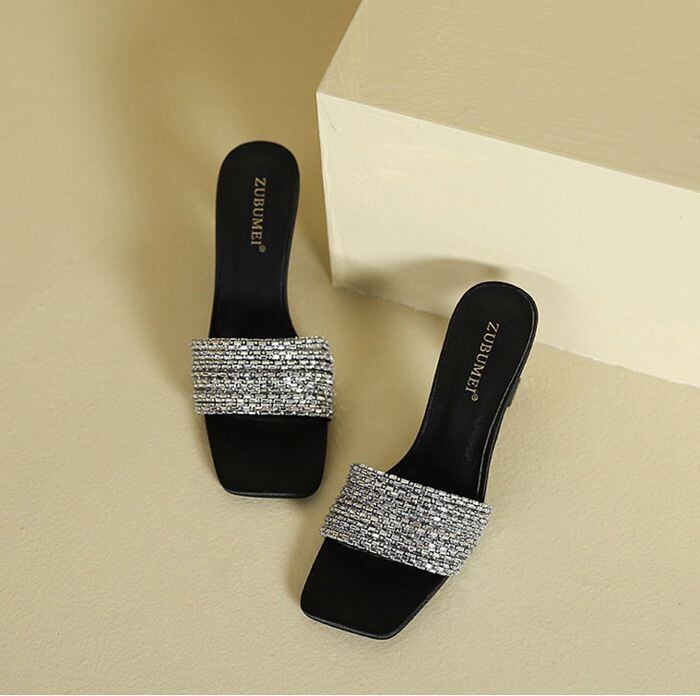 ハイヒールサンダル レディース 夏 ハイヒール サンダル スリッパ シューズ 靴 スクエアトゥ サマーサンダル 履きやすい 歩きやすい 疲れにくい 韓国ファッション