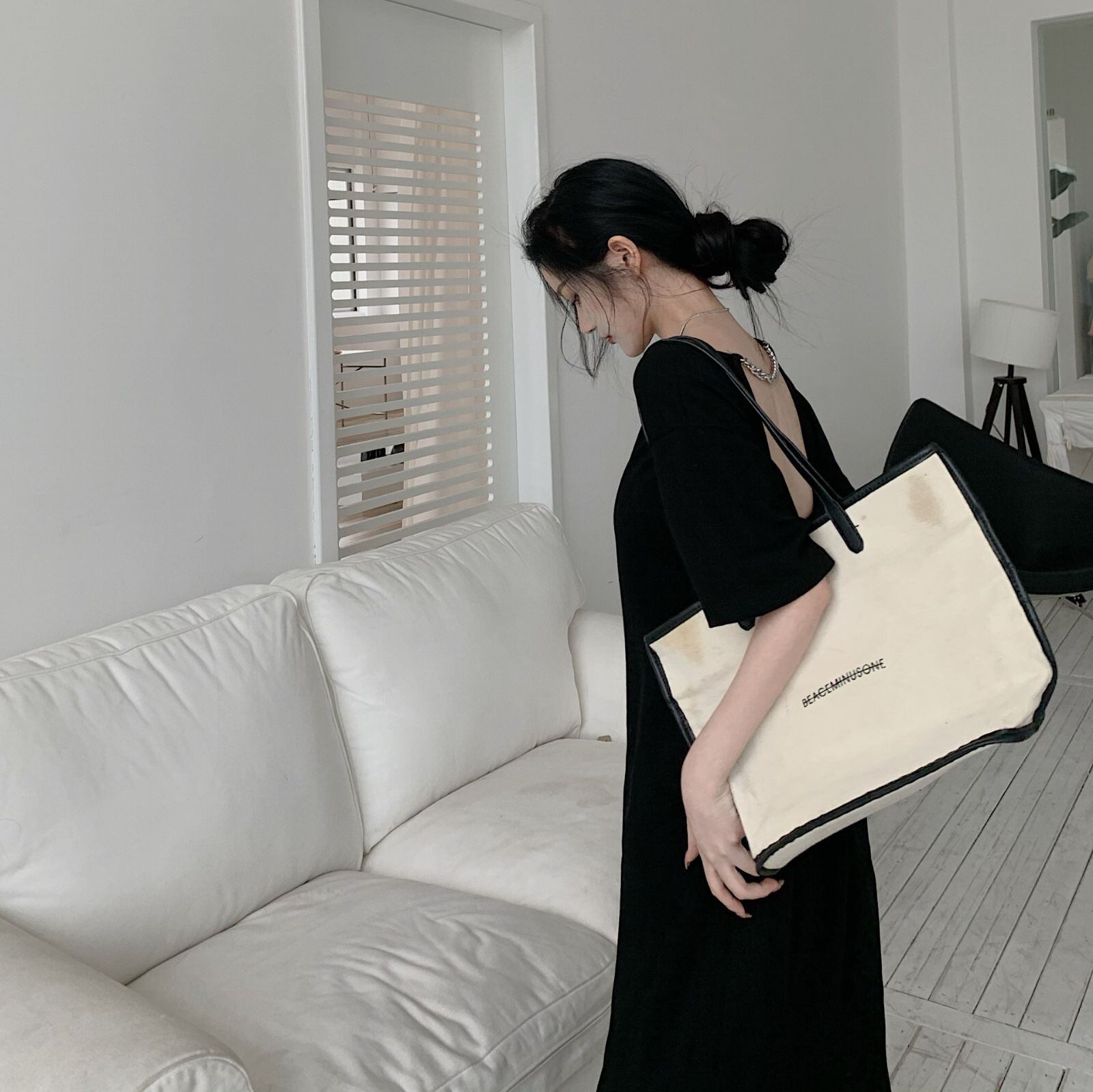 背中の肌見せで旬の抜け感が楽しめるTシャツワンピース。