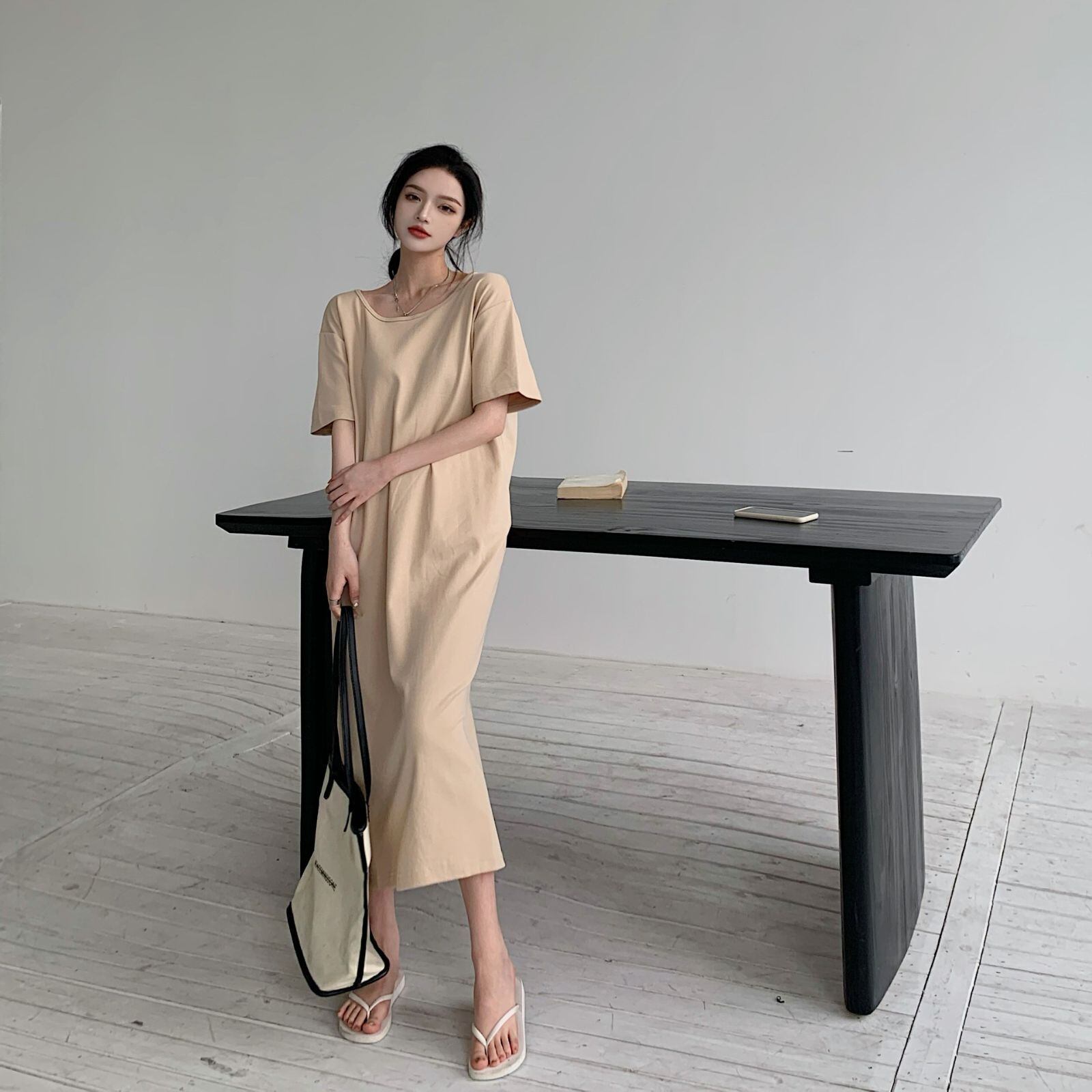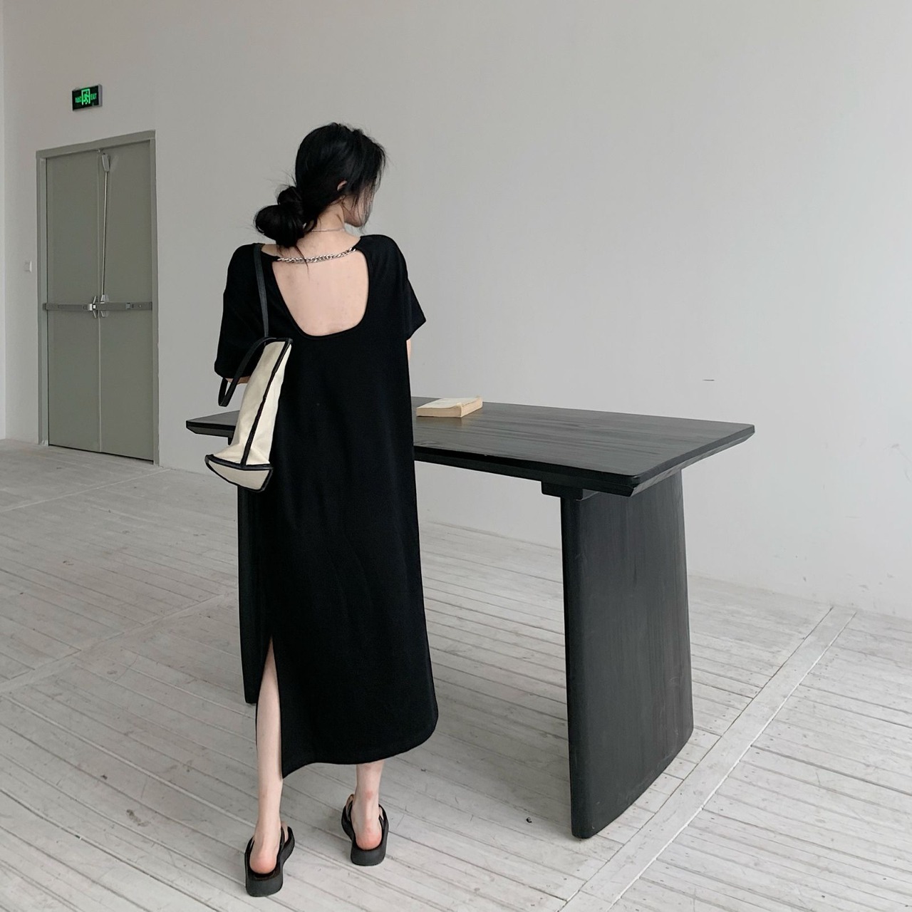 バックシャンワンピース ロングワンピース 背中あき Tシャツワンピ 半袖 ゆったり レディース クルーネック ワンピース 夏 ロング丈 背中開き カジュアル 体型カバー 着痩せ エレガント ゆったり 肌触り 柔らかい 楽ちん jixi16 | オキナ商店