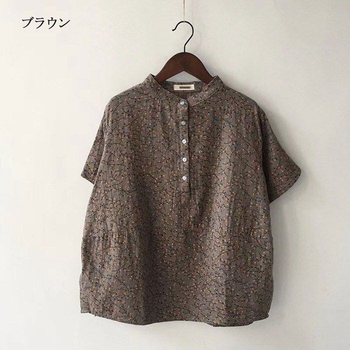 シャツ ブラウス Vネック ギャザー 綿 半袖 レディース Vネックシャツ チュニック トップス 軽い 半袖シャツ 襟付き バンドカラー 立ち襟 バンドカラーシャツ 抜け感 ゆったり ゆるシャツ カジュアル vネックブラウス 薄手 ふんわり 着回し シンプル 可愛い
