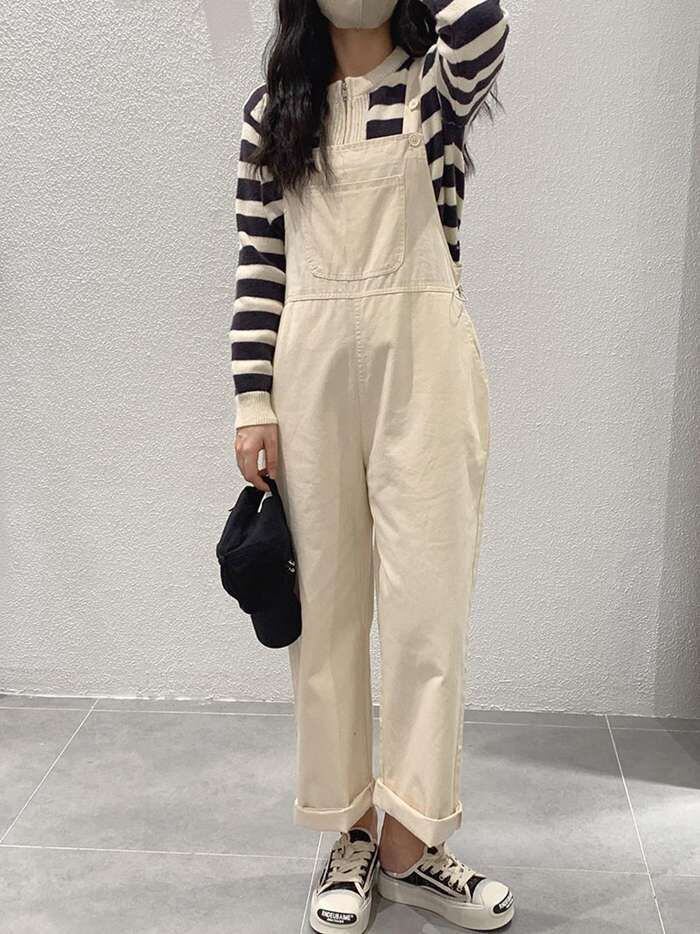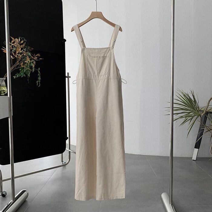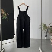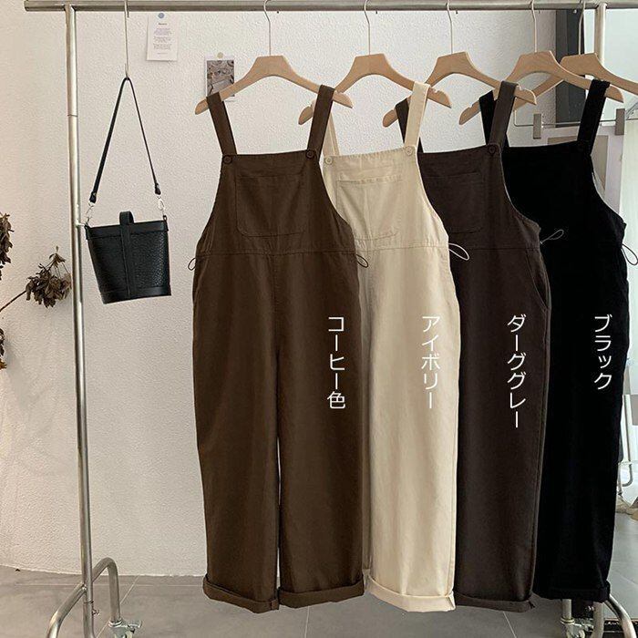 オールインワン レディース サロペット 綿 大きいサイズ サロペ つなぎ ワイドパンツ ワイド オーバーオール パンツ ボトムス ロング 体型カバー ビッグシルエット ゆったり 無地 シンプル アイボリー ダーググレー 春 夏 oumalai01 | オキナ商店