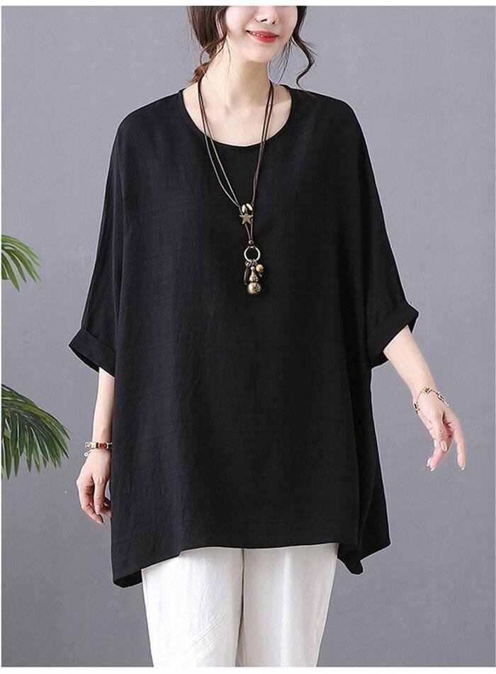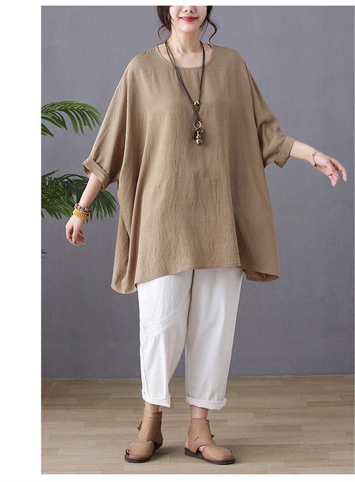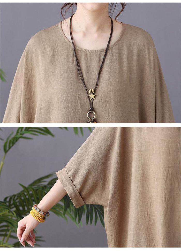 チュニック 夏 Tシャツ レディース 五分袖 プルオーバー トップス 大きいサイズ チュニック 爽やか ナチュラル 体型カバー 森ガール ゆったり ふんわり きれいめ リゾート 旅行 着まわし 無地 abm26 | オキナ商店