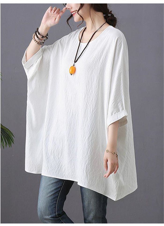 チュニック 夏 Tシャツ レディース 五分袖 プルオーバー トップス 大きいサイズ チュニック 爽やか ナチュラル 体型カバー 森ガール ゆったり ふんわり きれいめ リゾート 旅行 着まわし 無地