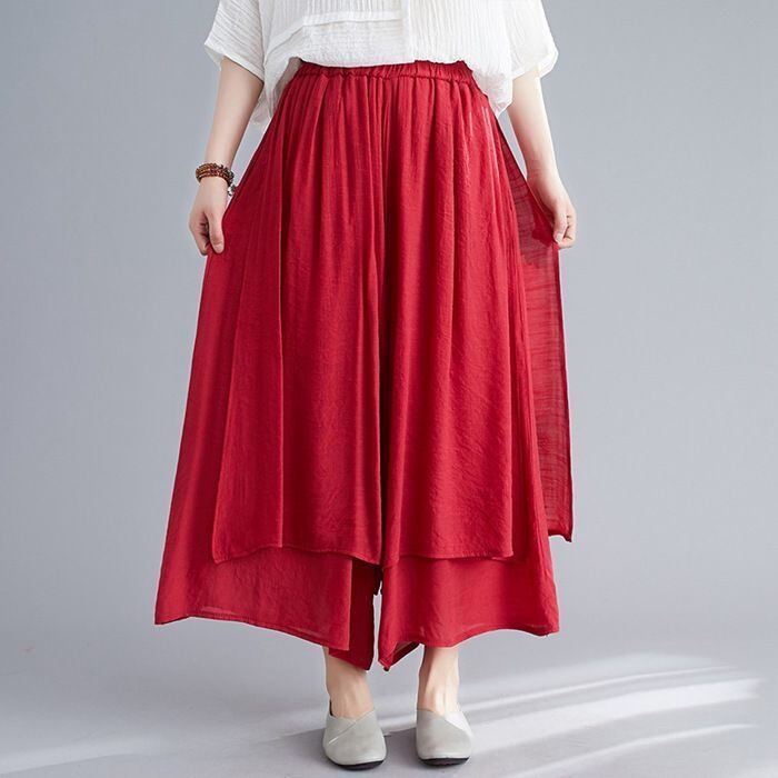 ワイドパンツ レディース ガウチョパンツ スカート風 パンツ 綿麻風 ガウチョパンツ ロングパンツ ワイド レディースパンツ ハイウエスト 夏 ウエストゴム ボトムス ポケット付き 体型カバー スカーチョ ゆったり 大きいサイズ カジュアル