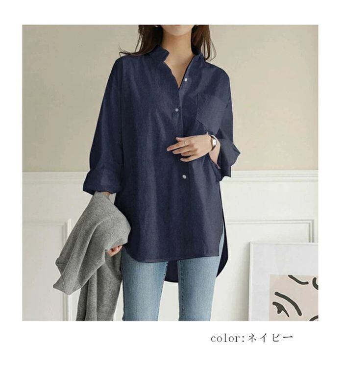 シャツ レディース 長袖 襟付き ブラウス ゆったり 大きいサイズ トップス 黒 襟付きシャツ 羽織り 通勤 OL 長袖シャツ 薄手 シャツブラウス 白 ワイシャツ チュニック 大人 かわいい ロングシャツ 体型カバxiaokb265 | オキナ商店