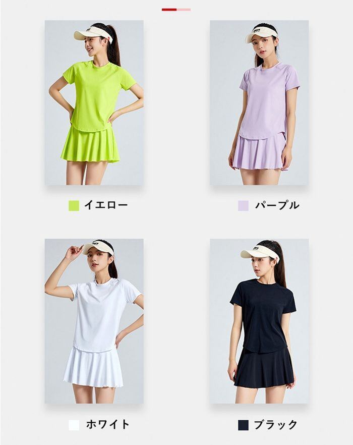 テニスウェア レディース 上下セット ゴルフウェア テニス ゴルフ スポーツウェア ヨガウェア 半袖Tシャツ スカート トレーニング 運動着 吸汗速乾 インナーパンツ付き 体操服 着痩せ ランニング ウォーキング フィットネス 女子用 ルームウェア 夏物 カジュアル
