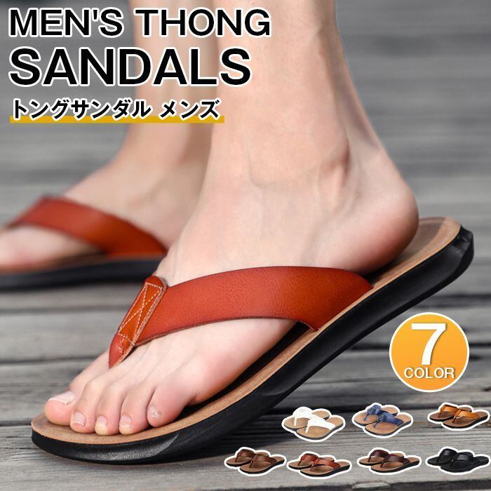 トングサンダル メンズ サンダル レザー コンフォートサンダル PU 大人 紳士 ビーチサンダル ビーサン スリッパ 靴 シューズ 歩きやすい お出掛け おしゃれ